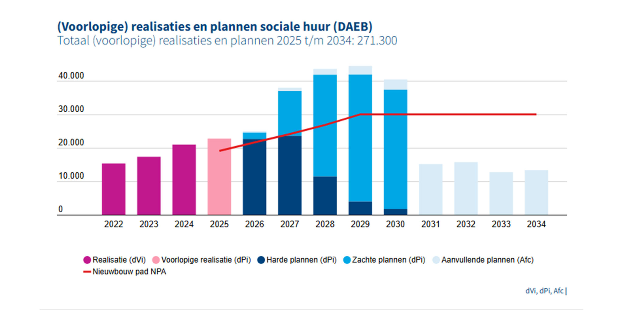 In 2025 bouwden corporaties meer woningen dan het groeipad van de Nationale Prestatieafspraken (NPA) vereist. Dit groeipad heeft als doel om vanaf 2029 30.000 nieuwe woningen per jaar neer te zetten. Ook de harde plannen voor 2026 en 2027 zijn in lijn met de beoogde aantallen (sociale huurwoningen: 2026: 22.660 en 2027: 23.610). In de woningbouwplannen tot en met 2030 staan 182.940 sociale huurwoningen gepland. De totale aantallen zijn bewust ambitieus, omdat bekend is dat uiteindelijke realisatie sterk afhankelijk is van beschikbare grond, vergunningverlening, uitvoeringscapaciteit, bezwaarprocedures én de beschikbare financiële ruimte.