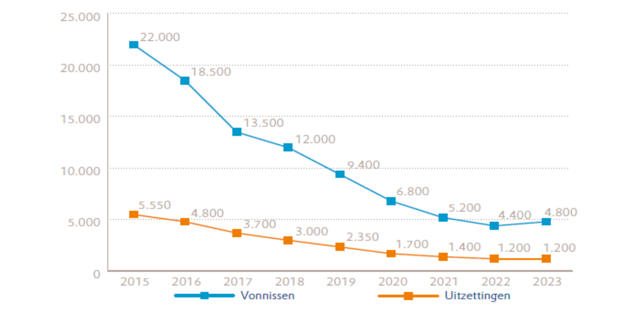 Aantal huisuitzetting stabiliseert, wel toename vonnissen